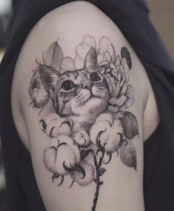 女性肩膀上多款漂亮的花朵纹身图案