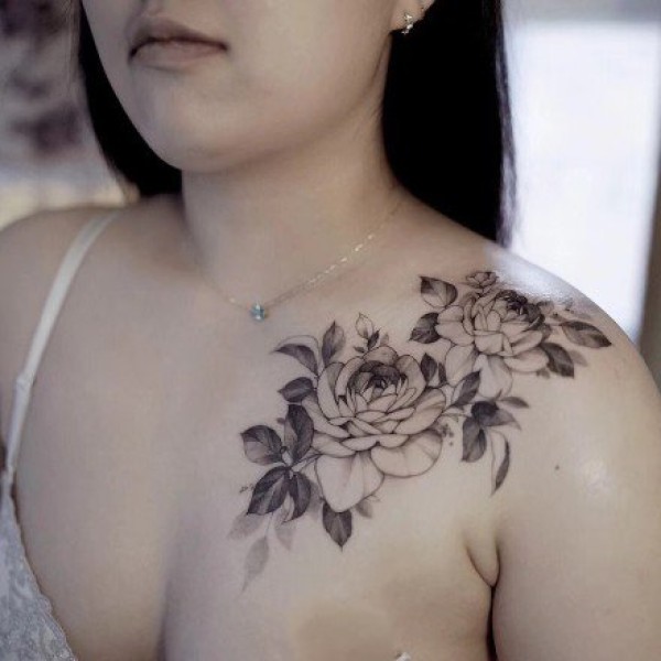 女性肩膀上多款漂亮的花朵纹身图案