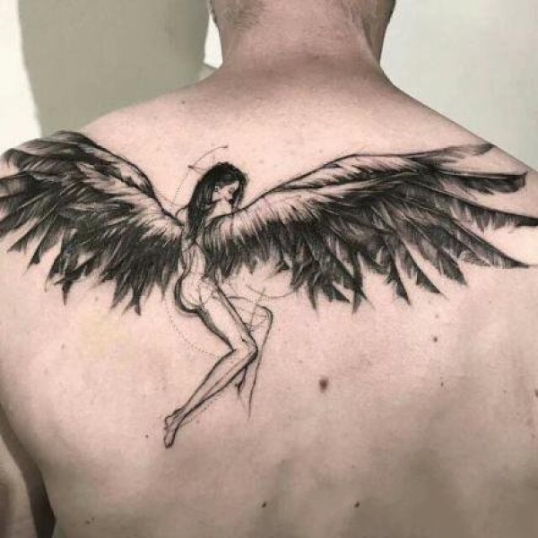新传统风格的9张男性黑灰大满背纹身图案图片