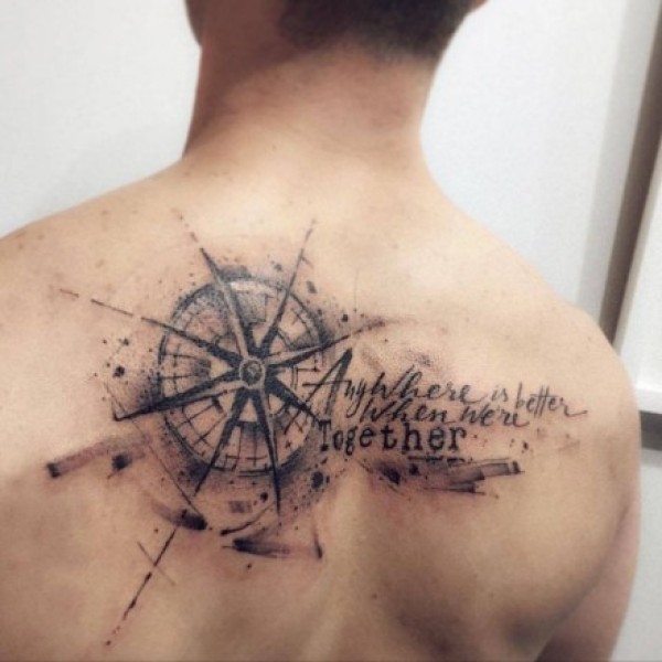 纹身指南针 水彩与线条结合的指南针纹身图案