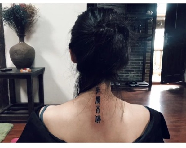 脖子上的汉字纹身