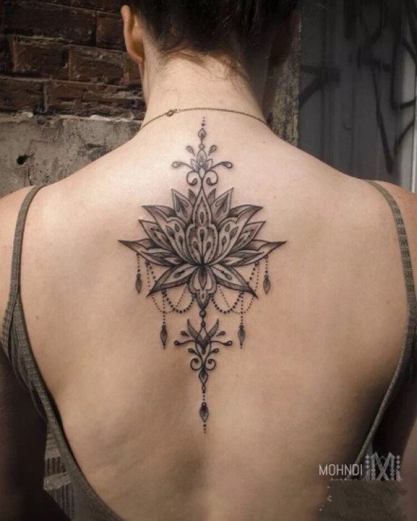 适合女生纹在后背脊柱处的唯美梵花纹身图案