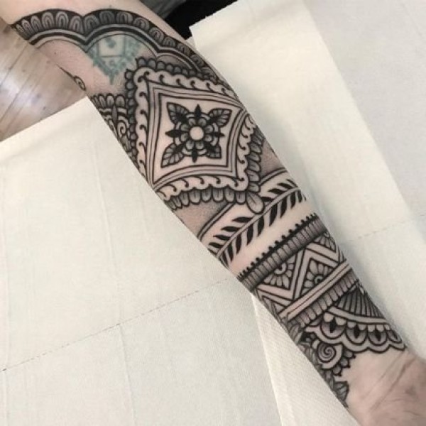小臂手腕处很有民族风情的手环臂环纹身图案