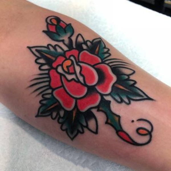 娇艳玫瑰手臂纹身_玫瑰花纹身图案大全_纹身图吧