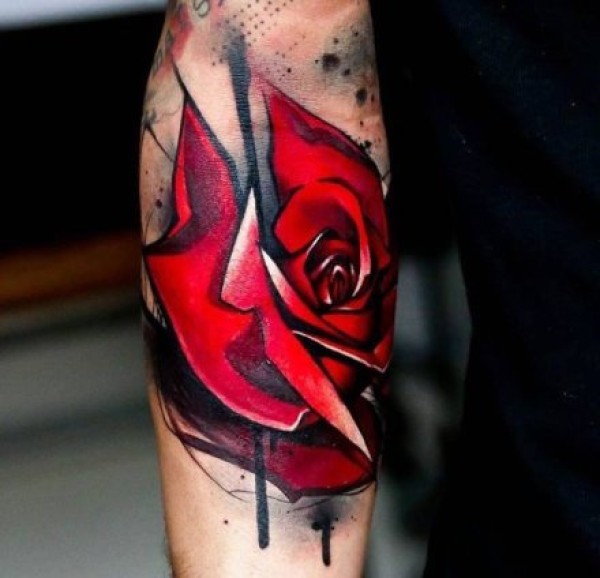 娇艳玫瑰手臂纹身_玫瑰花纹身图案大全_纹身图吧