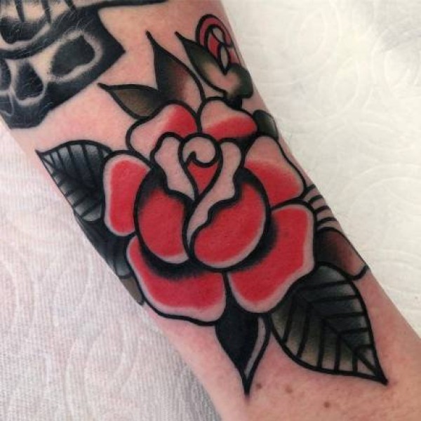 18组红色school风格的玫瑰花朵纹身图案