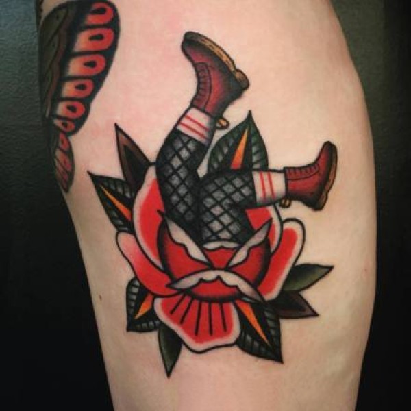 女生腿部唯美潮流的school玫瑰花纹身图案_玫瑰花纹身图案大全_纹身图吧