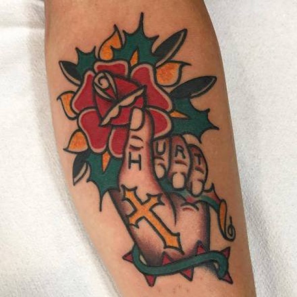 娇艳玫瑰手臂纹身_玫瑰花纹身图案大全_纹身图吧