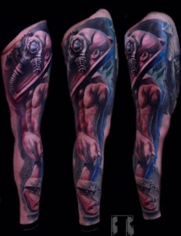 欧美花臂纹身_22张霸气黑灰欧美大黑花臂纹身图案作品图片