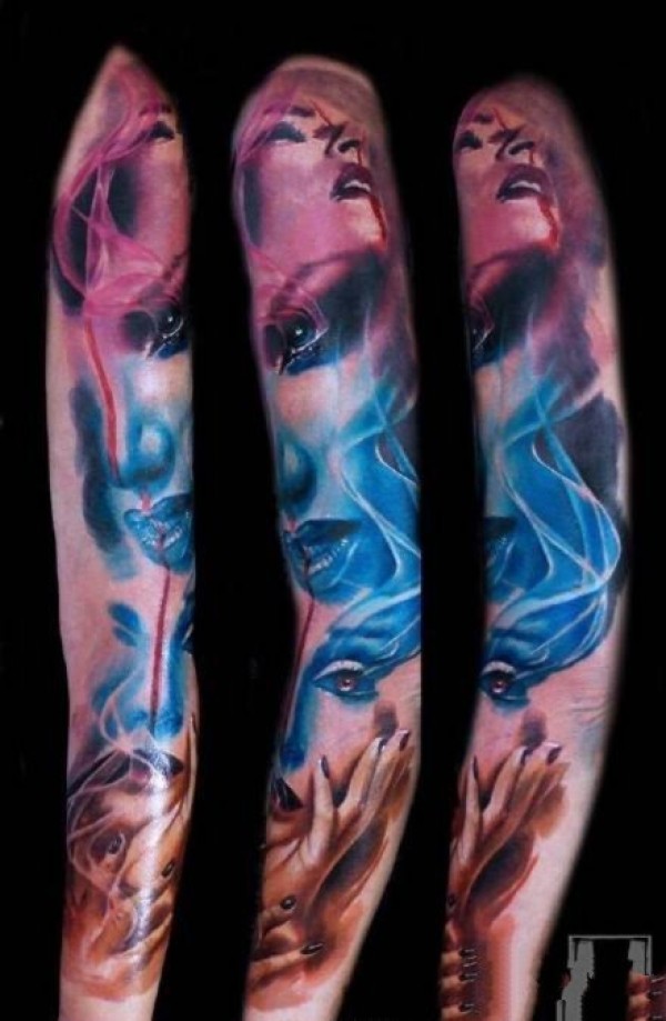 国外炫彩3d大花臂纹身作品欣赏