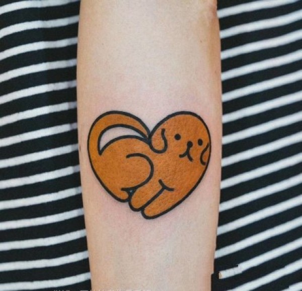 心形猫咪纹身--一组oldschool风格的猫咪主题心形纹身图案