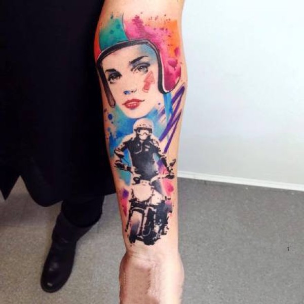 手臂上的抽象水彩人像纹身图案欣赏
