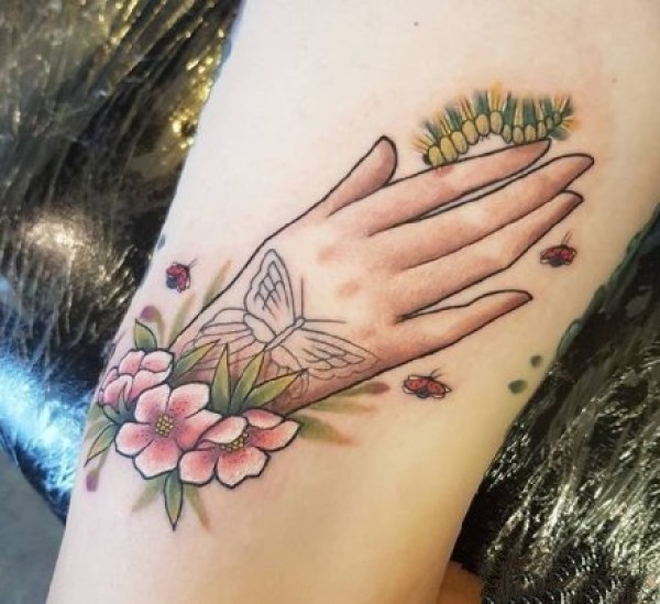 手势纹身图案 各种各样黑灰色调的手势纹身图案