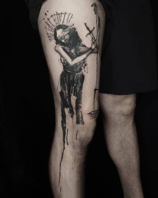 适合大腿和大臂的创意水墨设计纹身图