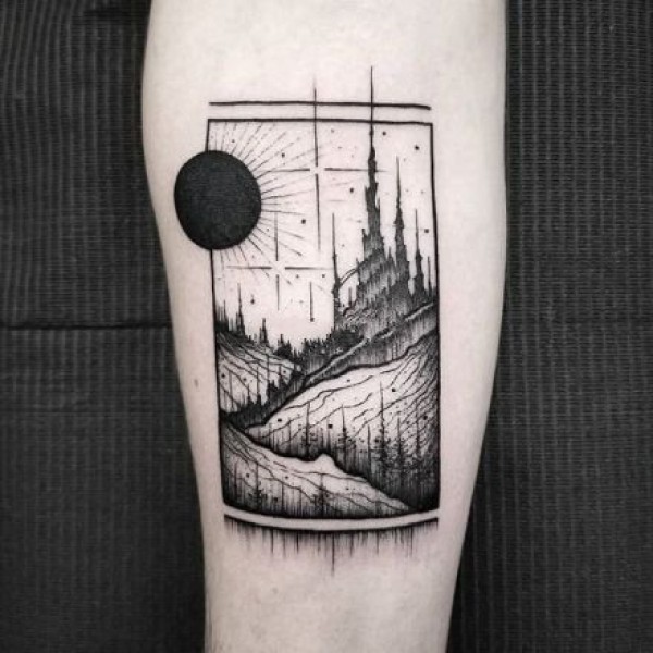 暗黑风格的山水风景纹身图片9张