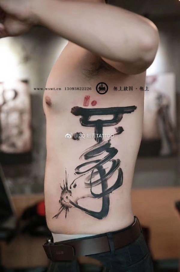 很帅气的一组水墨文字纹身作品