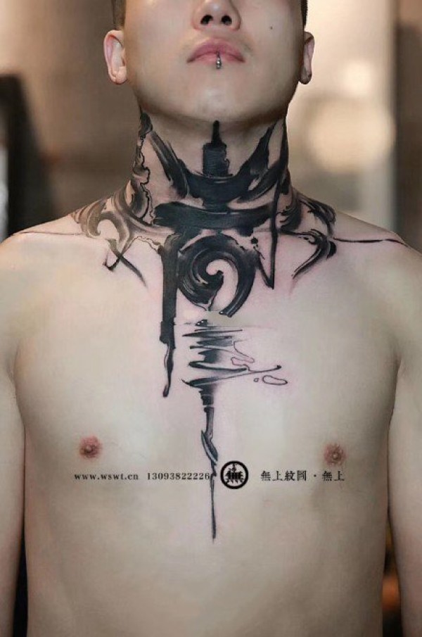 很帅气的一组水墨文字纹身作品