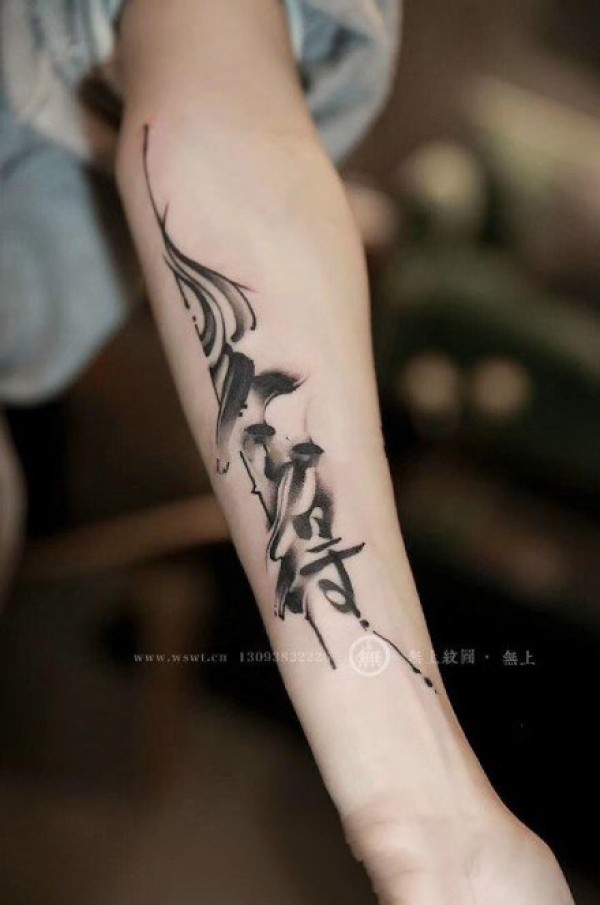 很帅气的一组水墨文字纹身作品