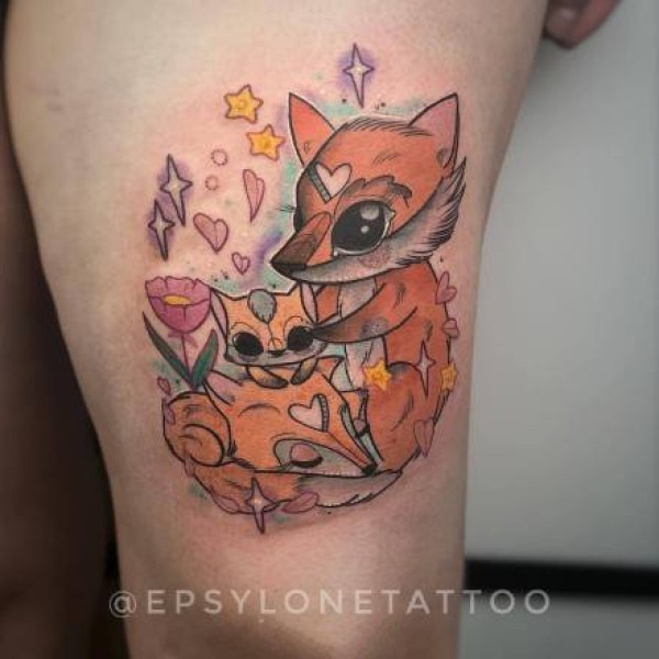 很漂亮的一组彩色卡通小狐狸纹身图案