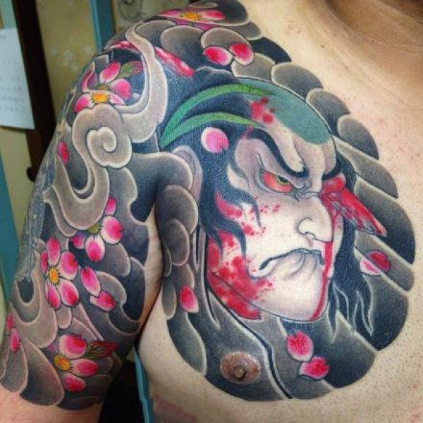 一幅潮流很酷的半甲佛头与象神纹身图片图片推_半甲纹身图案大全_纹身图吧