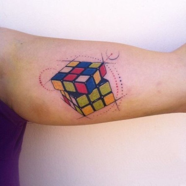 魔方纹身图案 男生手臂上黑色的魔方纹身图片