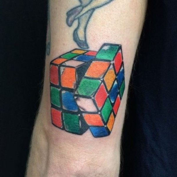 手臂彩色魔方纹身图案