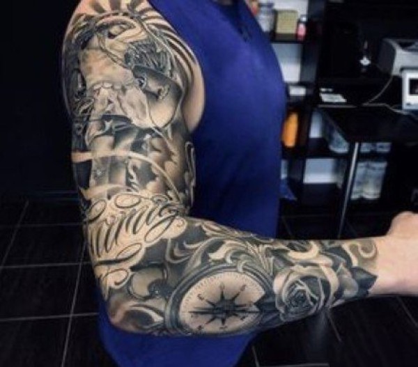 欧美花臂纹身_22张霸气黑灰欧美大黑花臂纹身图案作品图片
