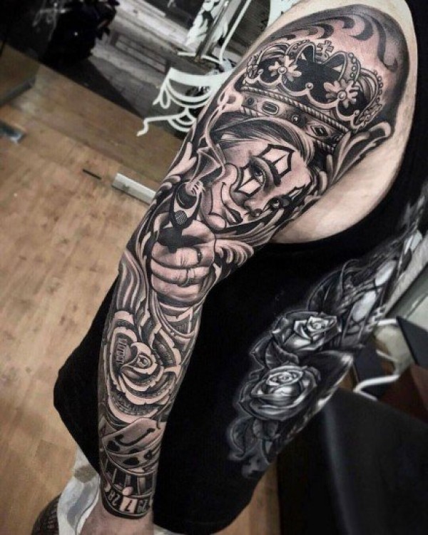 欧美花臂纹身_22张霸气黑灰欧美大黑花臂纹身图案作品图片