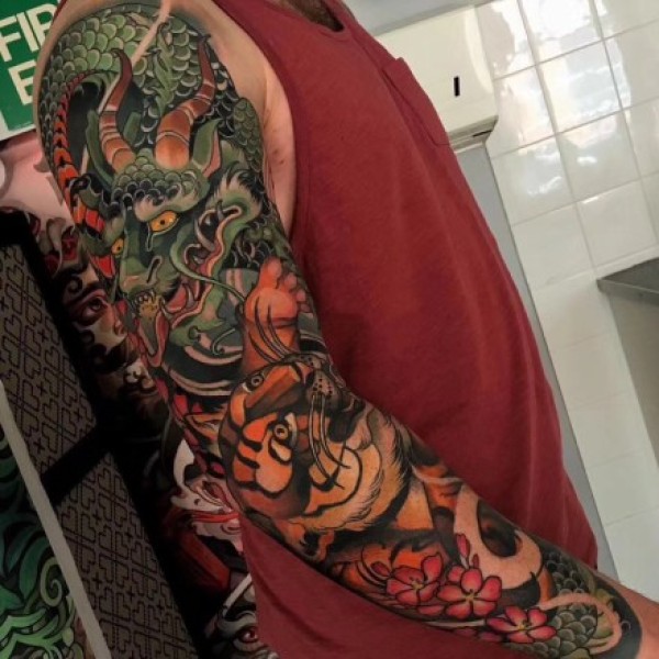 日式手彫刺青作品—半甲龙很感谢客户认可手彫刺青,手彫是日本纹身的手工雕刻技术,时间可以追溯到日本17世纪的江户时代。19世纪,手彫技术被日本黑帮挪用,被用作入会仪式,象征着从此就是江湖中人。在日式传统