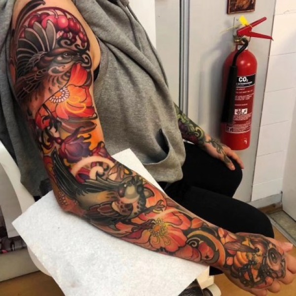 传统风格的一组男性花臂和花腿纹身图案欣赏