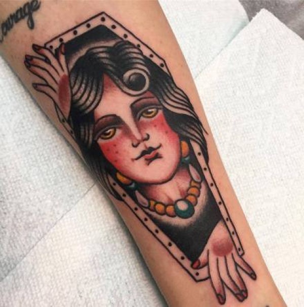 old school风格的红色女郎纹身图片