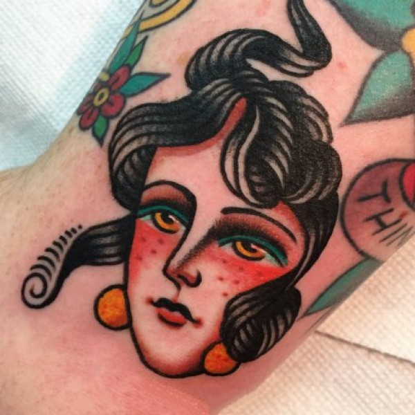 old school风格的红色女郎纹身图片