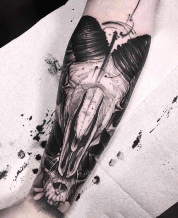 暗黑风格的一组羊头纹身图片