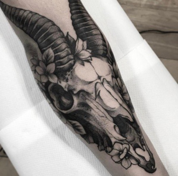 羊纹身 黑色的羊图腾纹身和白羊座纹身手稿