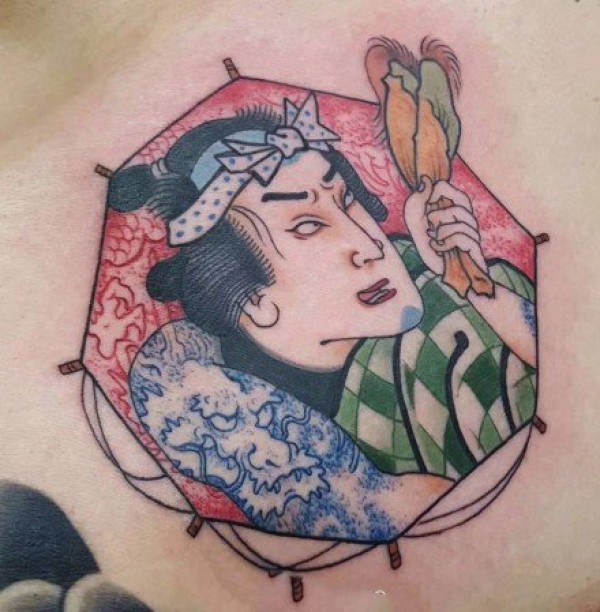 来自日本的艺伎生首纹身图案作品9张