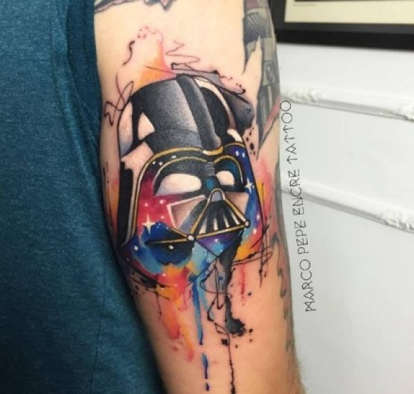 手臂纹身素材 女生手臂上彩色的武士纹身图片