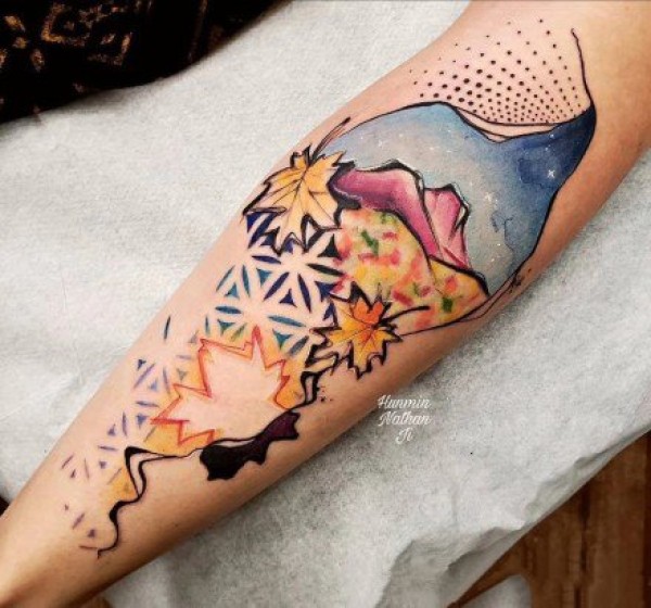 水彩纹身--一组鲜艳色彩的水彩纹身图案欣赏