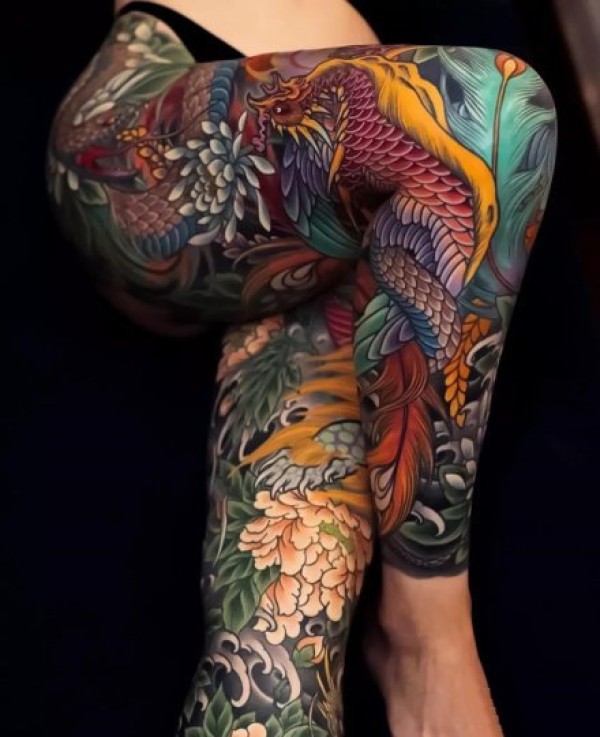 传统花腿纹身--18张传统风格的大花腿纹身图案作品