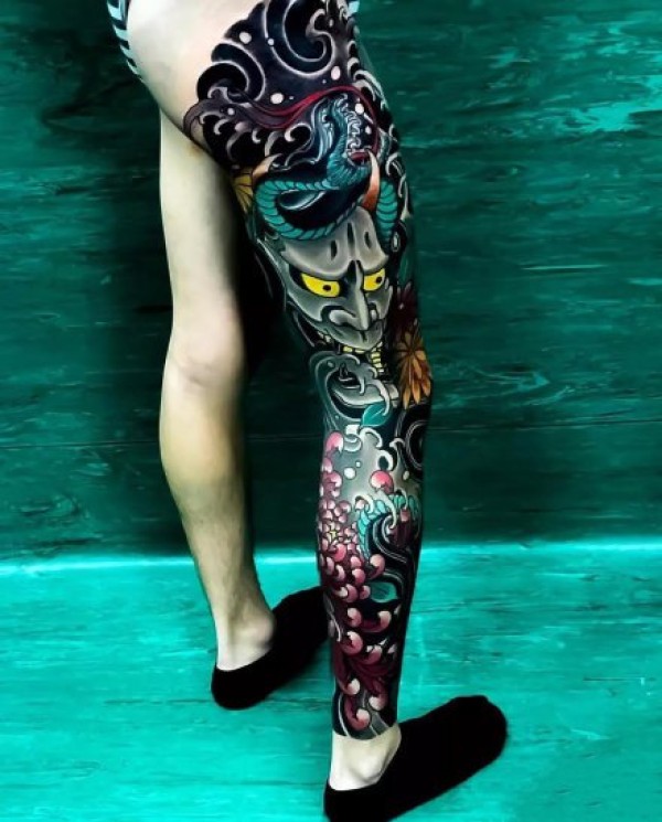 传统花腿纹身--18张传统风格的大花腿纹身图案作品