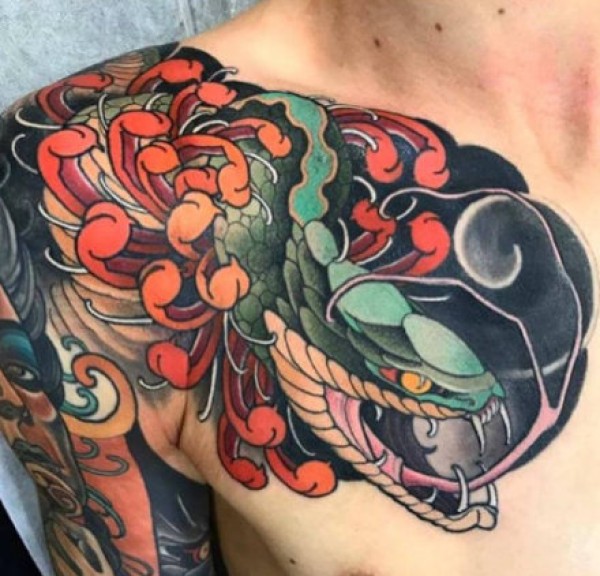 传统风格的胸胛半甲纹身图案