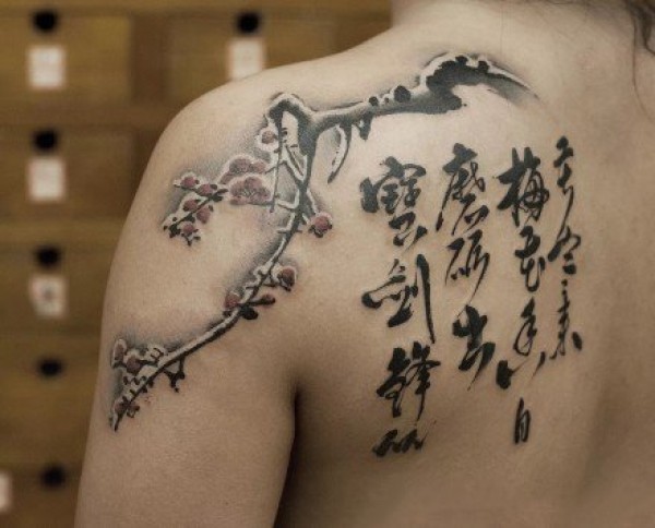 水墨书法风格的纹身-每个字背后都蕴含着深刻的含义