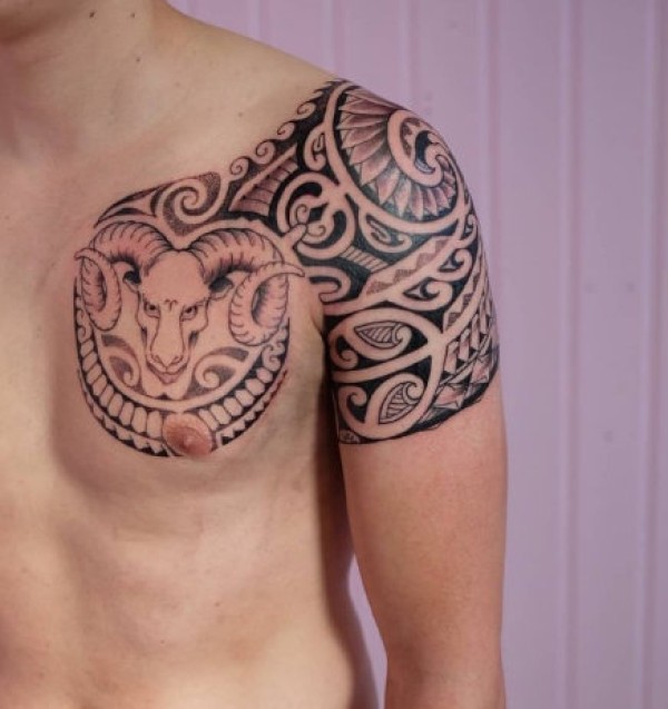 男性超帅气的黑色半甲部落图腾纹身图案