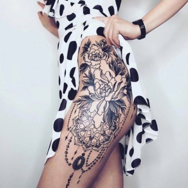 腿部纹身女 9组女性大腿侧部性感纹身作品图