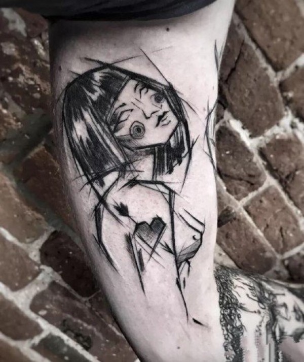 极简线条纹身 多款极简线条纹身素描欧美抽象纹身图片