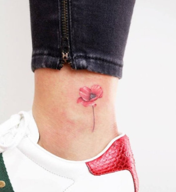 女生脚踝上的小清新花朵纹身图片