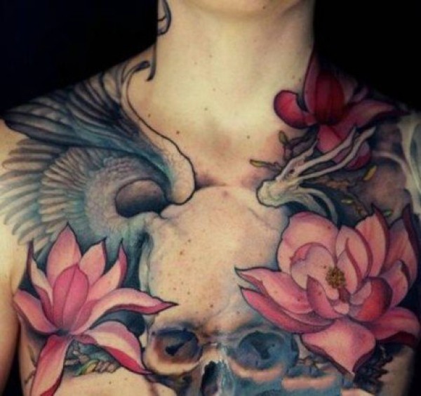 花朵纹身图案-20张身体各个部位传统彩绘纹身图案