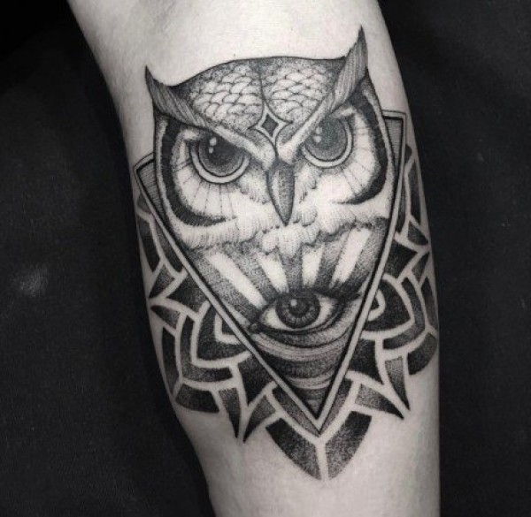 鹰纹身--一组彩色的猫头鹰等鹰纹身作品欣赏