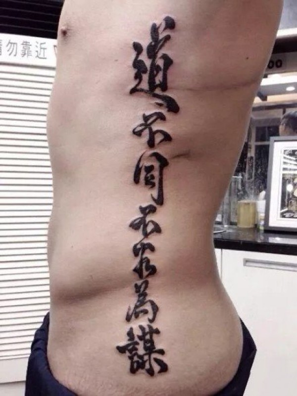 书法纹身 侧腰等部位的中文书法汉字纹身图案