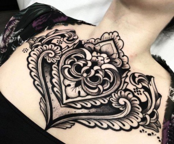 性感胸部纹身 9款女生别致优雅的胸下梵花纹身图案