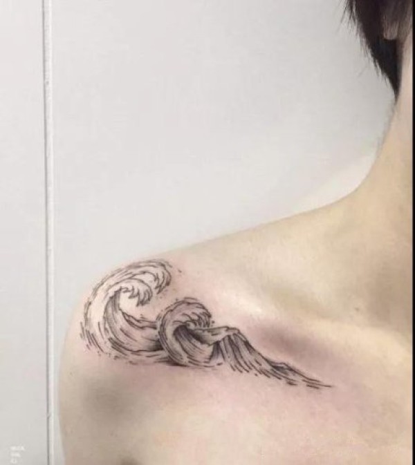 锁骨简约纹身_9张锁骨上的小清新简约黑灰纹身作品图案